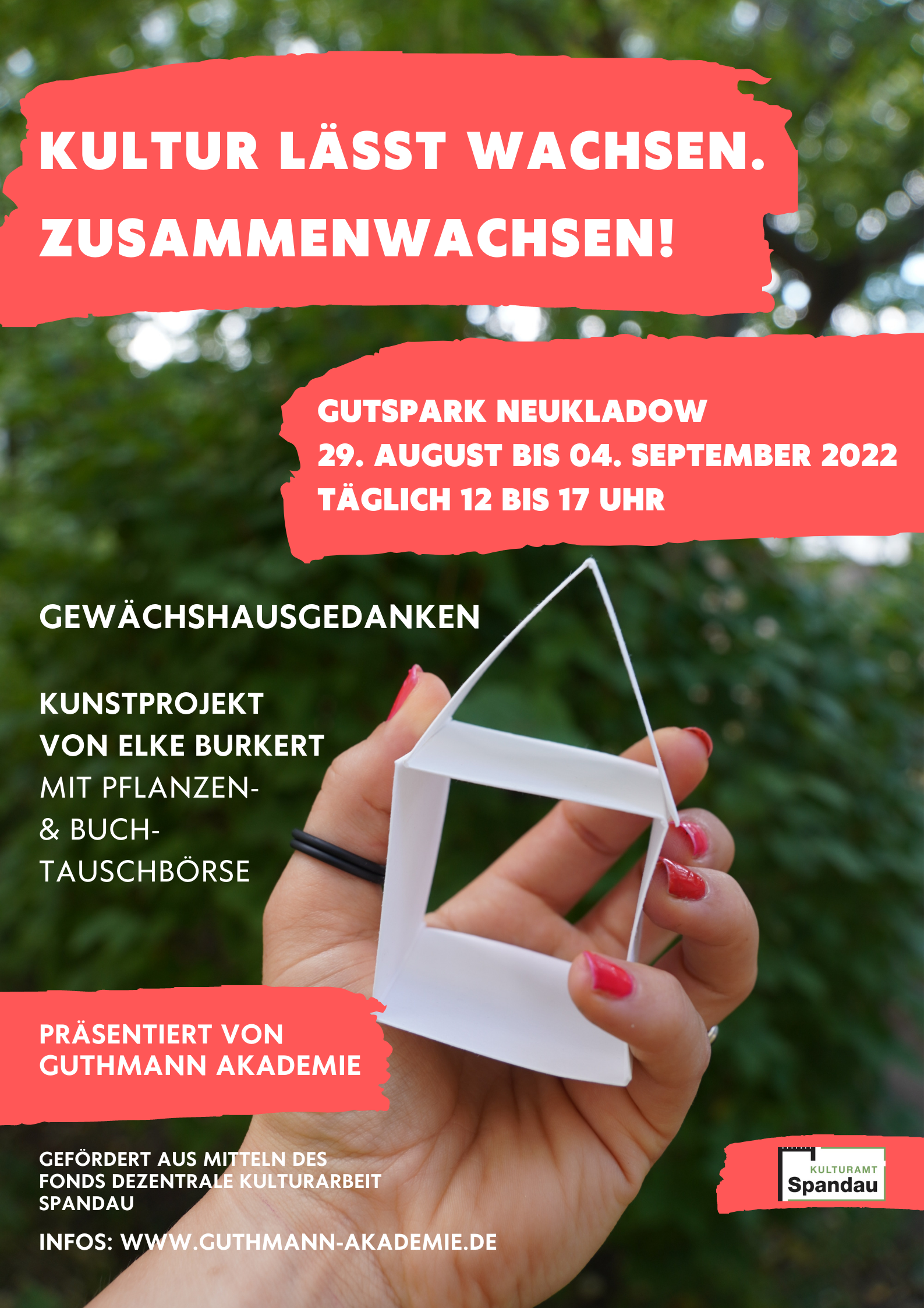 Das Projekt VERKNÜPFUNGEN – KunstNetzWerk Neukladow der Guthmann Akademie gUG (haftungsbeschränkt) findet statt in Zusammenarbeit mit dem Kulturamt Spandau und wird gefördert mit Mitteln aus dem Fonds Dezentrale Kulturarbeit des Bezirks Spandau.