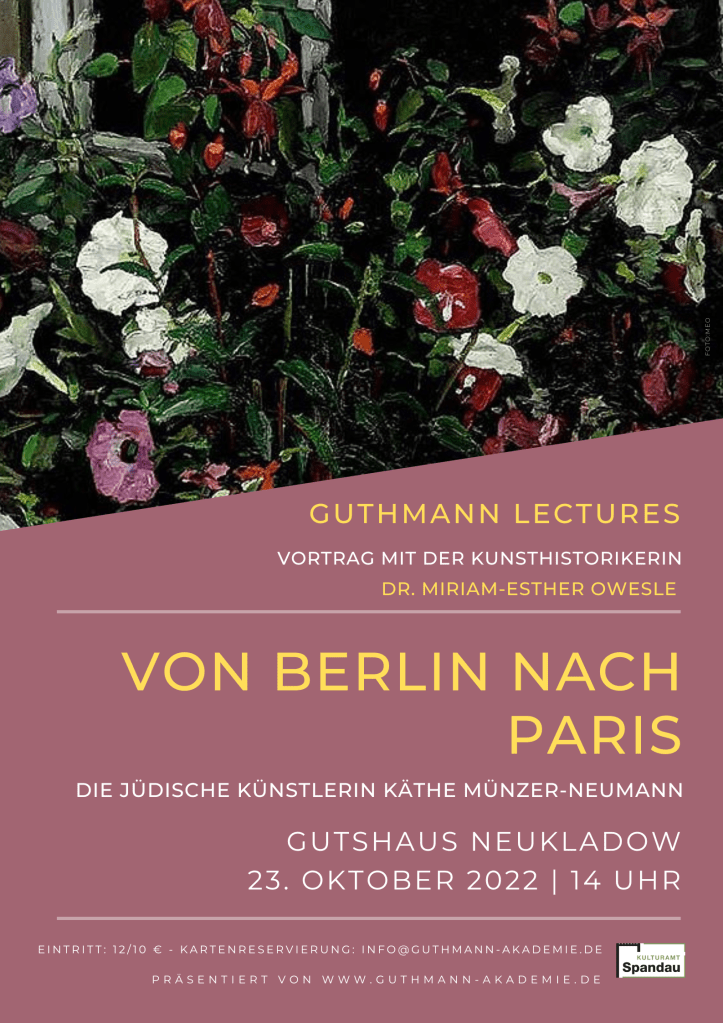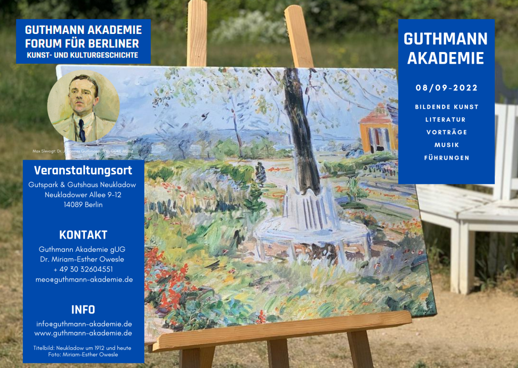 Die Guthmann Akademie wird die Vernissage zur Ausstellung „Mehr als nur Impressionismus“ – Künstler der Berliner Secession“ mit einführenden Worten von Dr. Miriam-Esther Owesle mitgestalten.