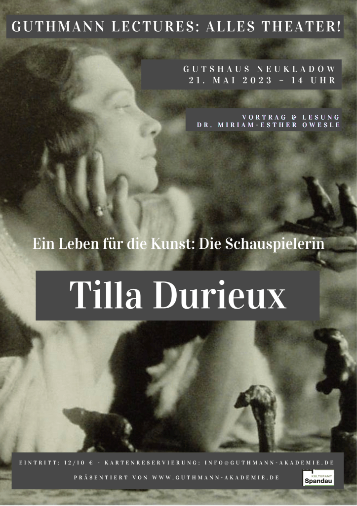 Dass die männerbestrickende femme fatale, als die sich die Schauspielerin Tilla Durieux (1880-1971) durch Franz von Stucks Rollenporträt als Circe von 1913 einen unvergänglichen Platz im kollektiven Gedächtnis eroberte, während des Ersten Weltkriegs mit selbstgemachtem Kompott für Johannes Guthmanns leibliches Wohl sorgte, wirft ein Licht auf das enge Verhältnis des Hausherrn zu der renommierten Mimin, die um 1910 Triumphe auf den Berliner Bühnen feierte. Gar oft war Tilla Durieux zusammen mit ihrem Ehemann, dem Kunsthändler Paul Cassirer, in Neu-Cladow zu Gast. Hier fand sie eine Vielzahl jener Gaul’schen Kleinbronzen vor, deren Bewunderin sie war. Hier lieferte sie sich am Havelstrand Scheingefechte mit ihrer Schauspielerkollegin und -konkurrentin Lucie Höflich. Dass das Ende ihrer Ehe tragisch verlief und sich Cassirer anlässlich der drohenden Scheidung in der Kanzlei von Guthmanns Rechtsanwalt 1926 das Leben nahm, kann nicht darüber hinweg täuschen, dass sich die Ehe der beiden über Jahre als durchaus fruchtreiche Verbindung ausnahm, deren Spiegel das behagliche Ambiente und die niveauvolle Atmosphäre ihrer Wohnung im Berliner Tiergartenviertel war. An deren geistig-kulturell anregendem Klima partizipierte Johannes Guthmann zusammen mit seinem Lebensgefährten Joachim Zimmermann gar häufig. Jene Passagen, die Guthmann Tilla Durieux in seinen Lebenserinnerungen widmet, vermögen uns nicht nur Einblick in ein spannendes Künstlerinnenleben zu gewähren, sondern lassen darüber hinaus auch die große Zeit des Berliner Theaters zu Beginn des 20. Jahrhunderts wieder lebendig werden.